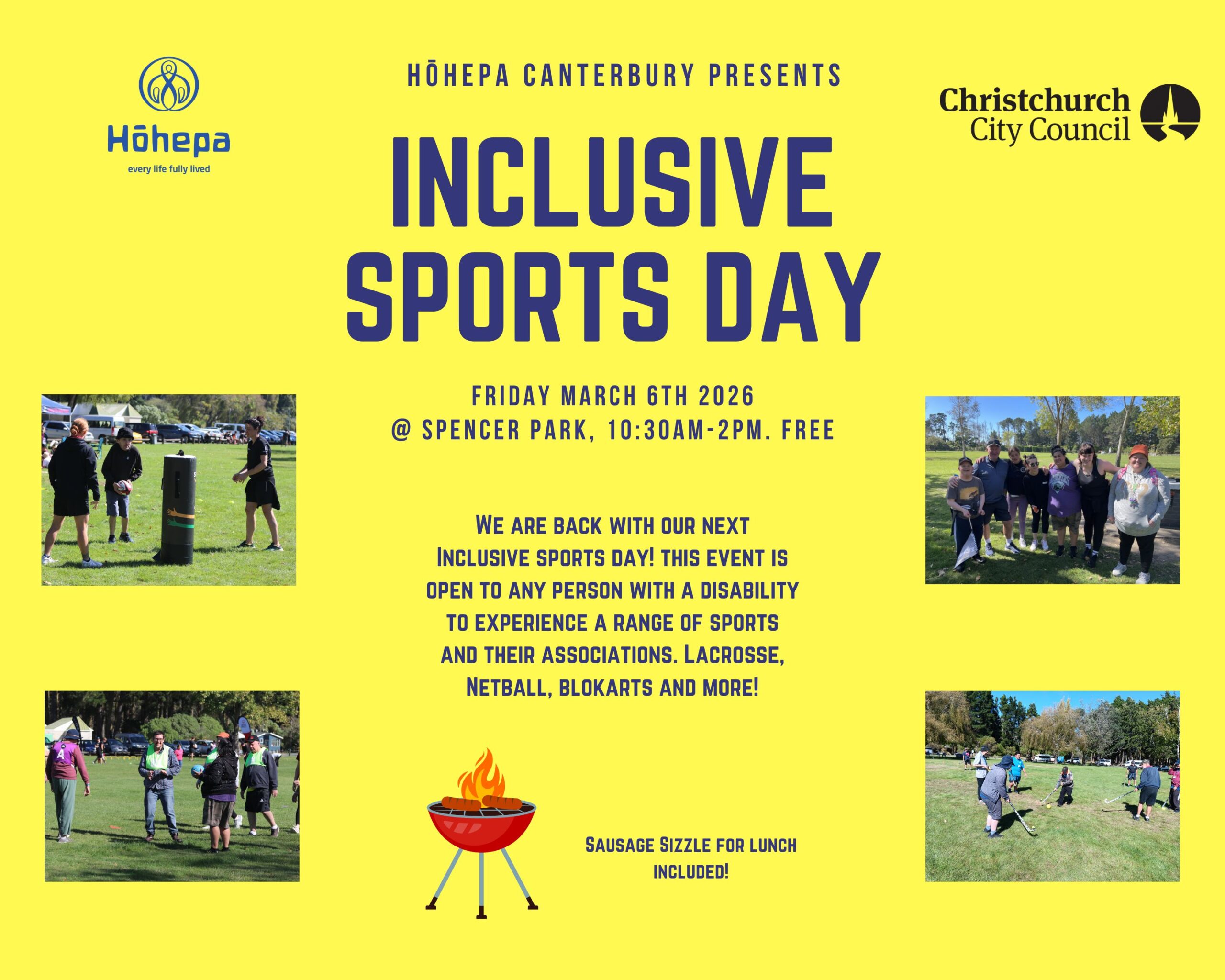 Hōhepa Canterbury, in partnership with Christchurch City Council, are holding an Inclusive Sports Day at Spencer Park on Friday 6th…