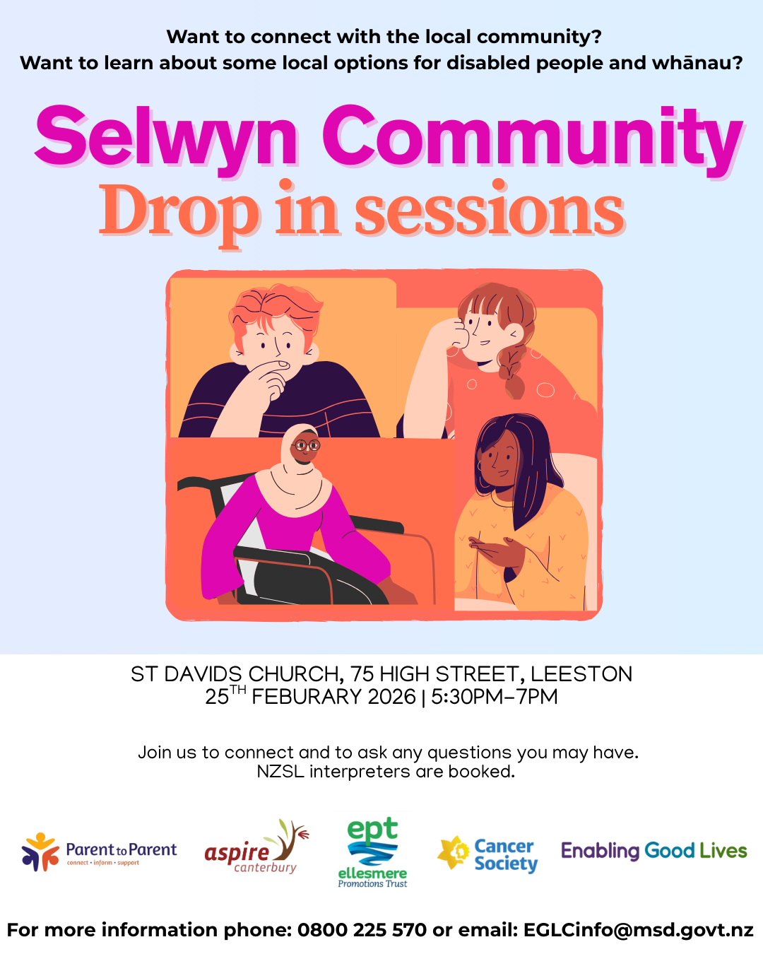 The Enabling Good Lives Christchurch team is excited to let you know about our upcoming Community Drop-in Session in Selwyn!