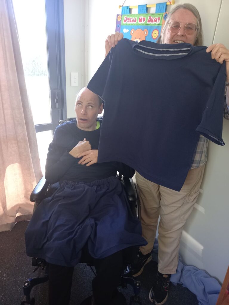 The Kaiapoi Centre has been making the most of the new overlocker donated by the Harcourts Foundation and local branch- Four Seasons Realty Ltd. Jayden has made himself a set of pajamas! Ka pai Jayden great effort. The Centre has also been repurposing old towels and giving them a new purpose!